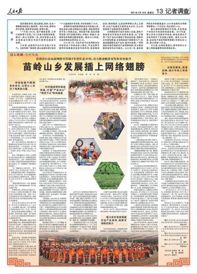 茶和苗寨怎么打出名声?很大程度依靠“数字化”。2021年,我们县登上人民日报,《苗岭山乡发展插上网络翅膀》的整版报道,道出了苗岭山乡走红的秘诀,更进一步带旺了人气。
