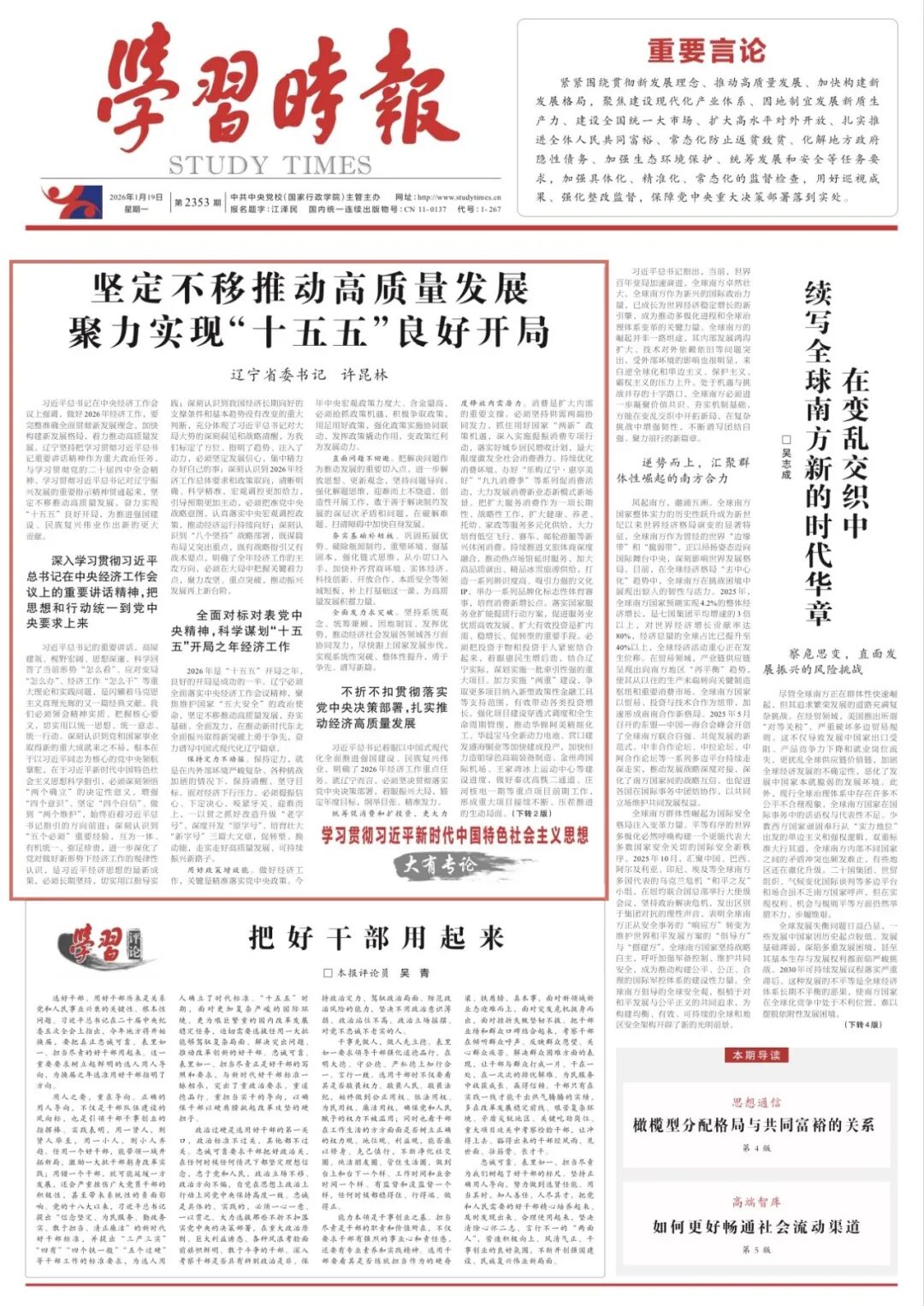 2026年是“十五五”开局之年,良好的开局是成功的一半。辽宁必须全面落实中央经济工作会议精神,聚焦维护国家“五大安全”的政治使命,坚定不移推动高质量发展,夯实基础、全面发力,在推动新时代东北全面振兴取得新突破上勇于争先,奋力谱写中国式现代化辽宁篇章。