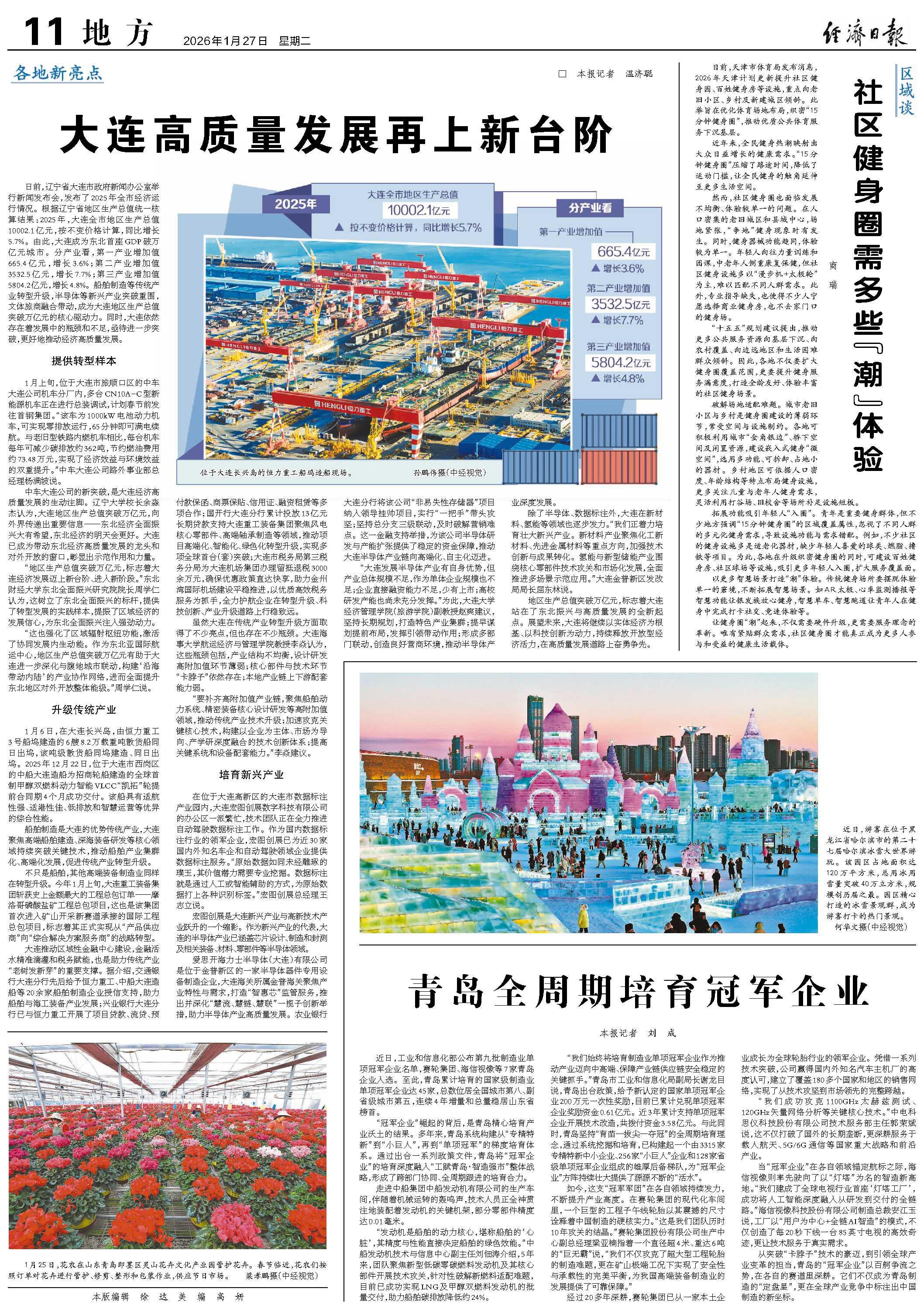 “这也强化了区域辐射枢纽功能,激活了协同发展内生动能。作为东北亚国际航运中心,地区生产总值突破万亿元有助于大连进一步深化与腹地城市联动,构建‘沿海带动内陆’的产业协作网络,进而全面提升东北地区对外开放整体能级。”周学仁说。