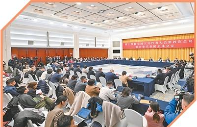 3月6日下午,十四届全国人大四次会议湖北代表团举行开放团组会议。